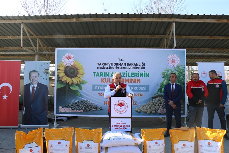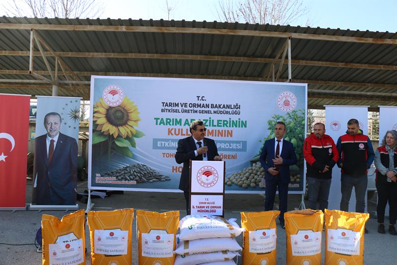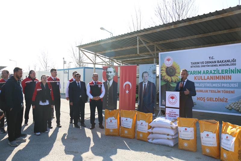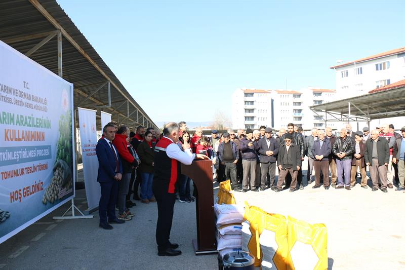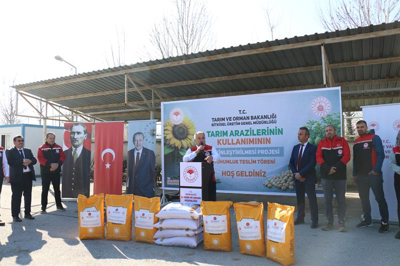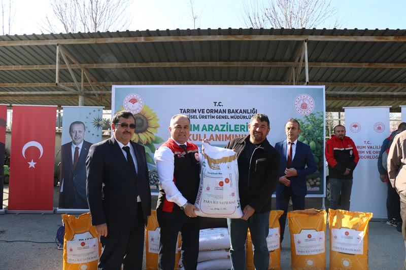 Bakanlığımız Bitkisel Üretim Genel Müdürlüğünce yürütülen Tarım Arazilerinin Kullanımının Etkinleştirilmesi (TAKE) Projesi kapsamında, İl Müdürlüğümüz koordinasyonunda tohum teslimatı yapıldı.